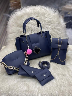 Chic Women's Leather Hand Bag Set - 5 Pcs in Blue